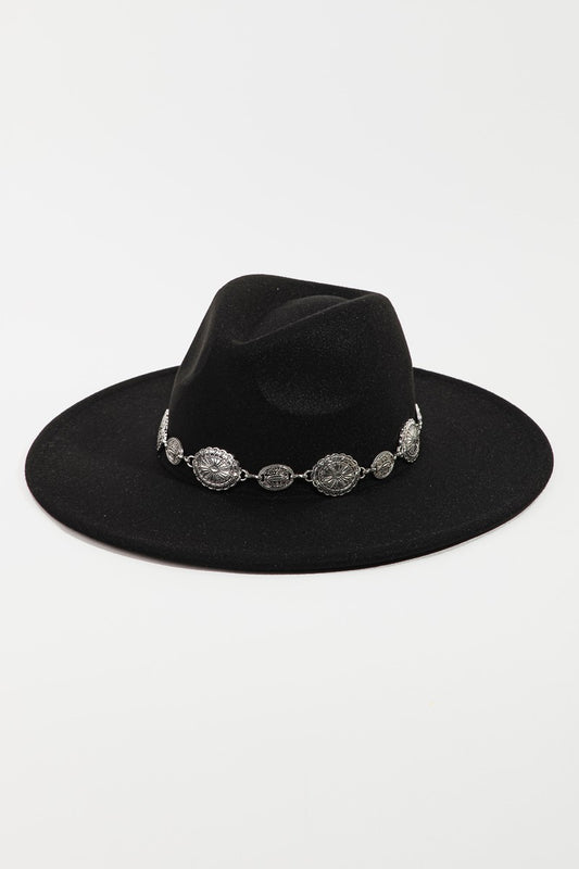 Sold outFame Metal Trim Flat Brim Fedora Hat