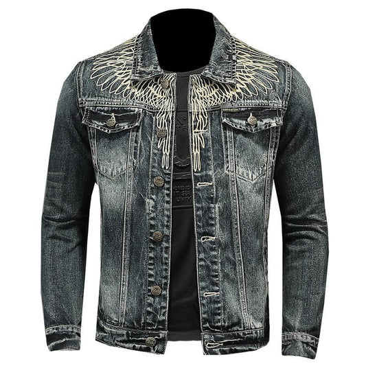 Slim Fit Denim Polo Collar Jacket – Retro Street Style for Spring & Fall