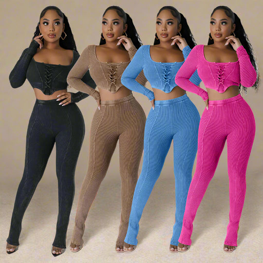 City Sleek Backless Two-Piece Set – Square Neck Top & Skinny Pencil Trousers