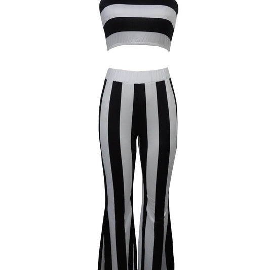 Striped Camisole & Flared Pants Set – 2-Piece Slim Fit Summer Look