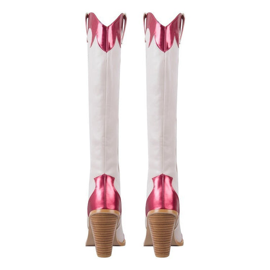Women's Plus Size Embroidered Floral Knee-High Western Boots – Thick Heel