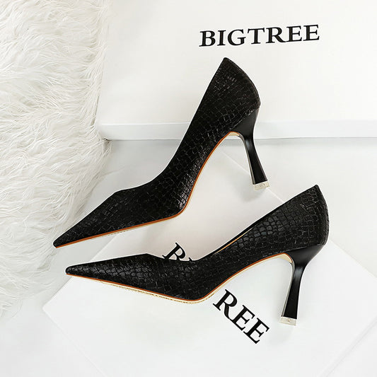 Vintage French Pointed High Heels – Shallow Slip-On PU Dress Shoes