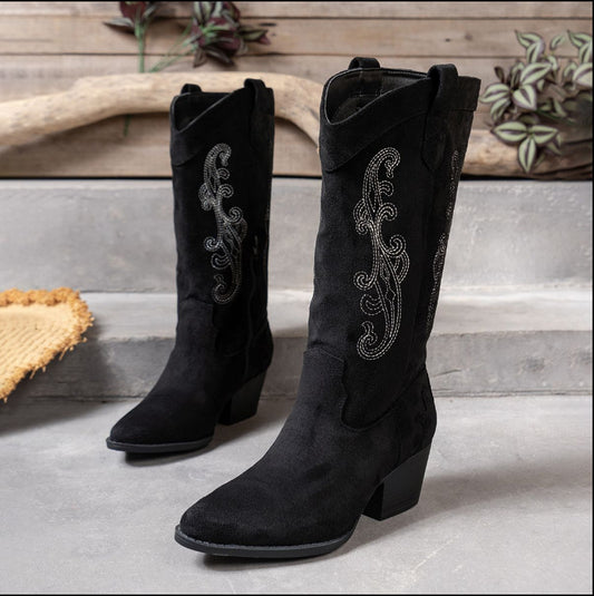 Boots & Bold Moves – Embroidered Western Chunky Heel Stunners