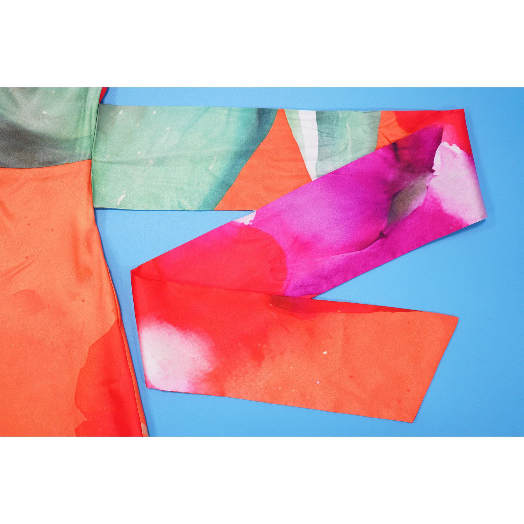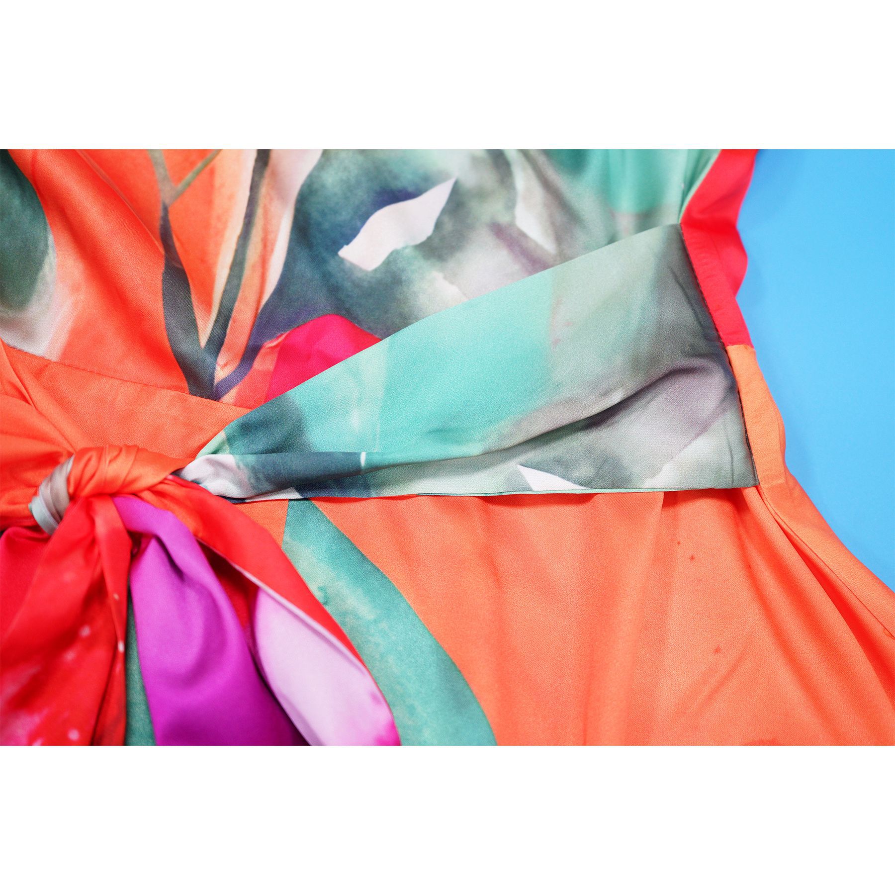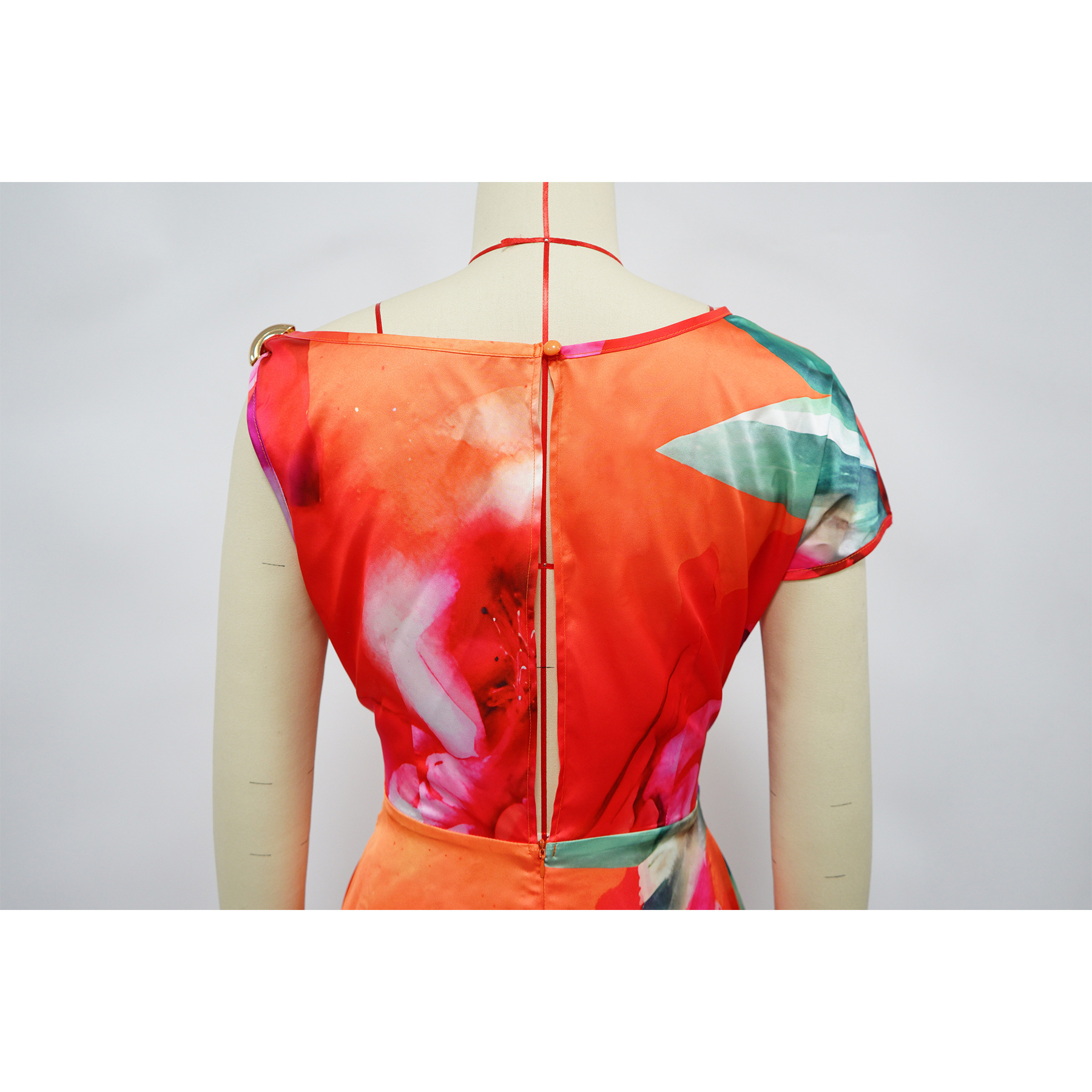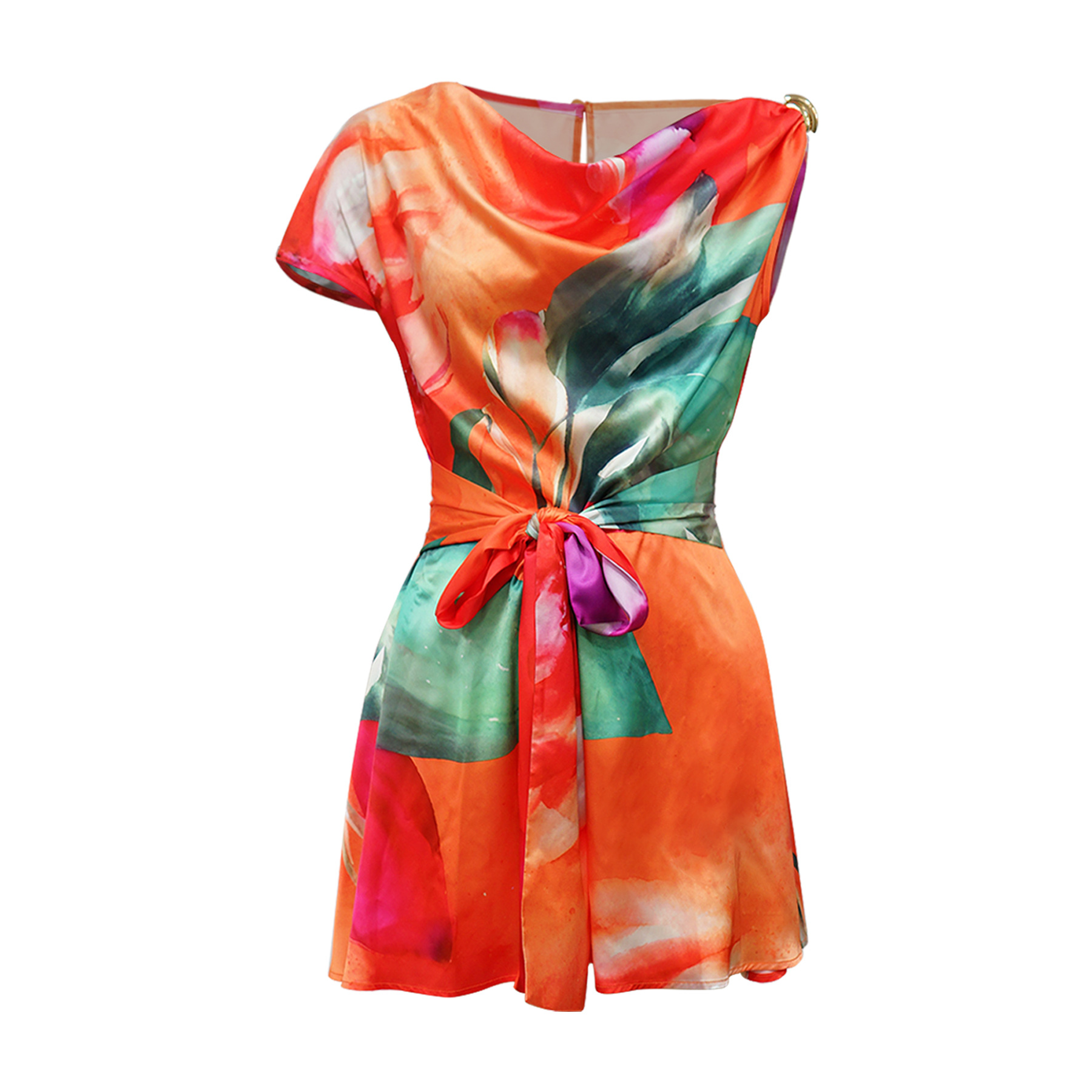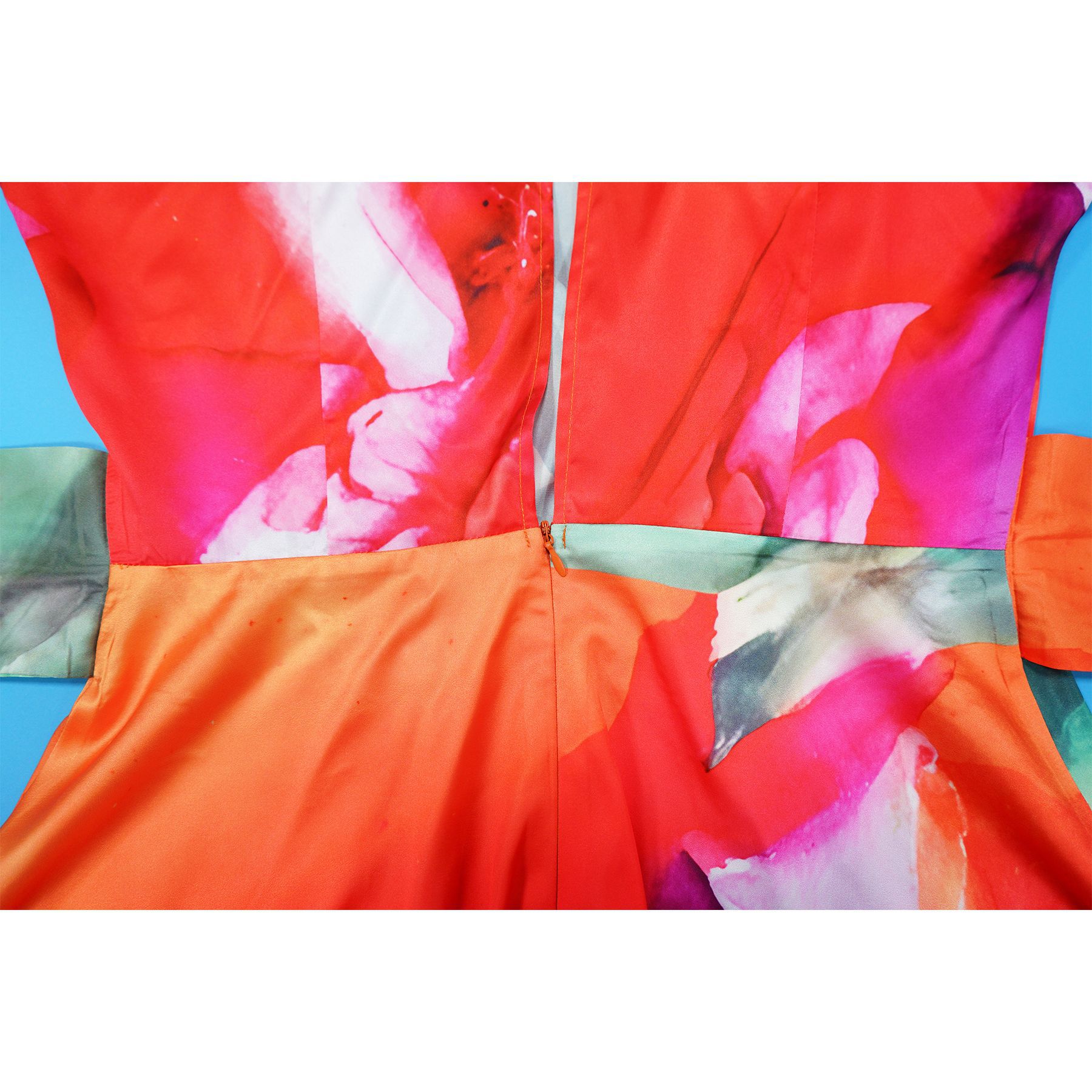 Crafted from a lightweight, satin-like polyester blend, it’s soft against the skin and ultra-breathable—perfect for rooftop nights, summer brunches, or a stylish vacation getaway. The vivid watercolor-inspired print melts sunset reds, fiery oranges, and tropical yellows together like a walking masterpiece. And with its flared hemline and sleek sleeveless cut, you’ll command attention at every angle.