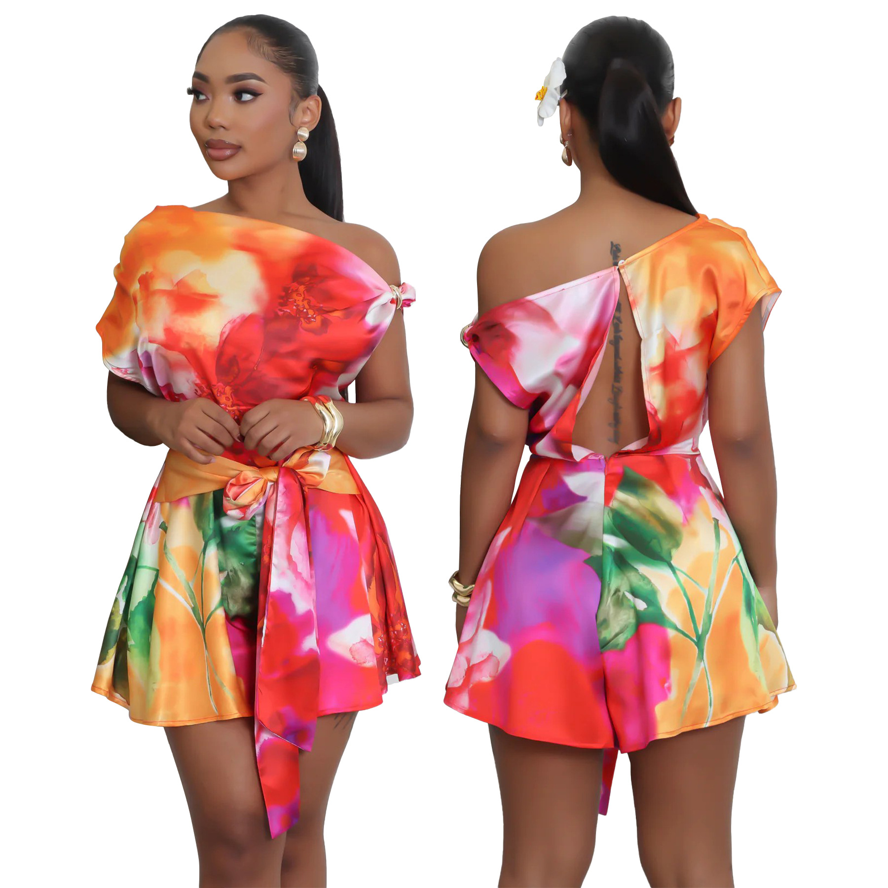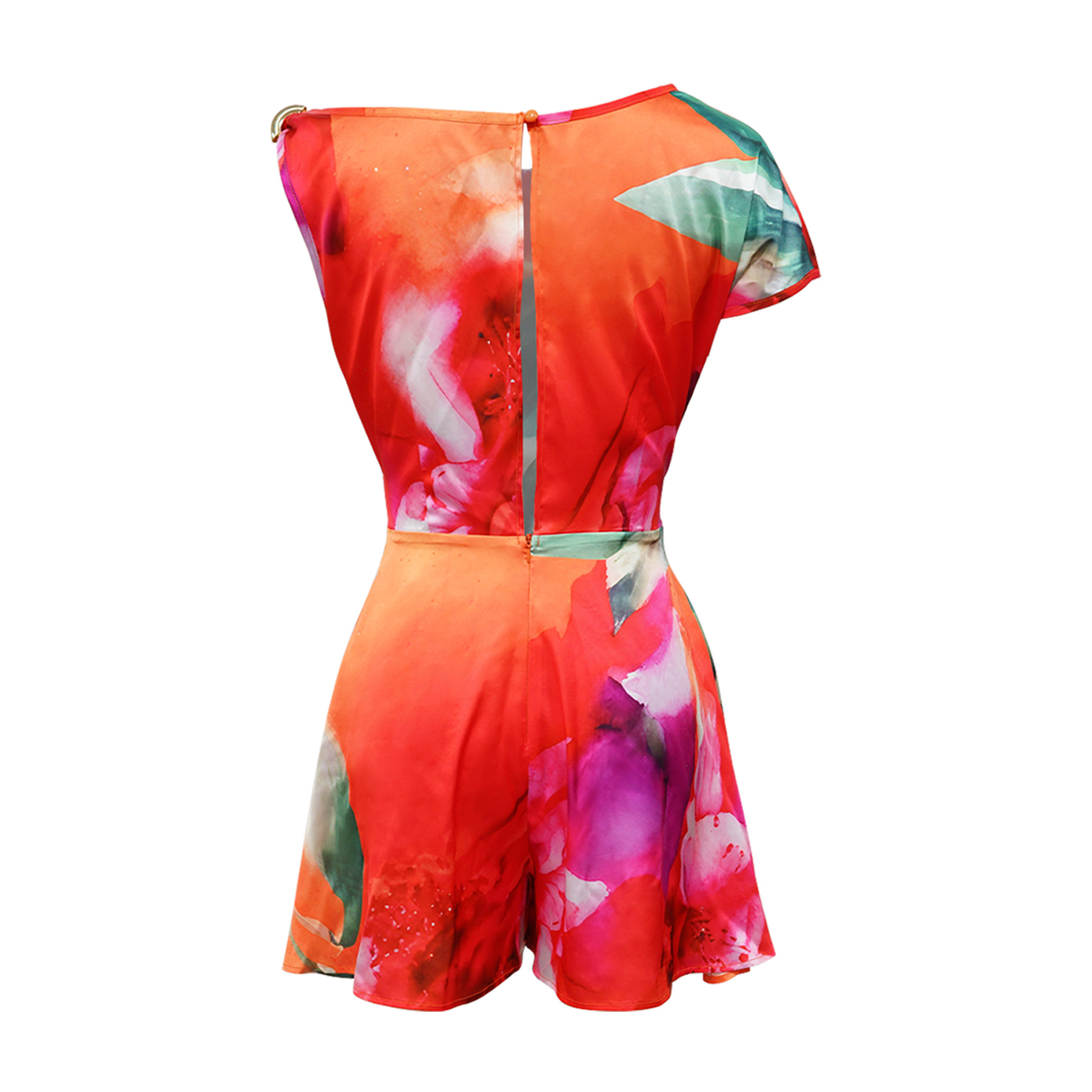 "Sunset Sizzle Oblique Shoulder Wrap Romper – Bullish Exclusive"