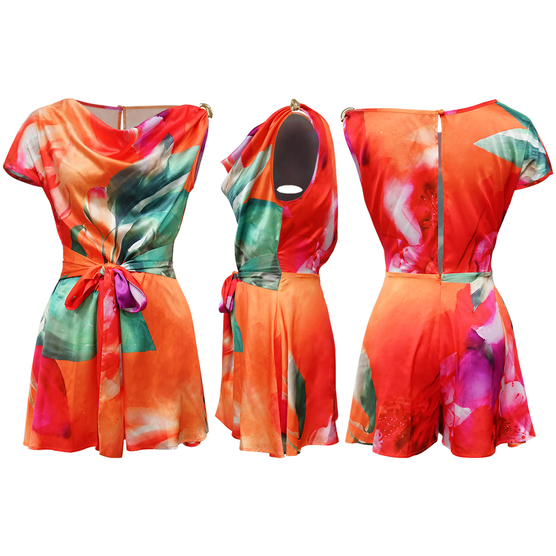 Step into your spotlight moment with our Sunset Sizzle Wrap Romper—a radiant statement piece designed for bold women who dress like they own the room. Featuring an asymmetric oblique shoulder cut and a flattering wrap-around waist tie, this romper hugs your curves in all the right places while offering a playful, fashion-forward silhouette.