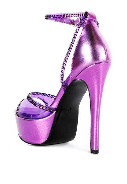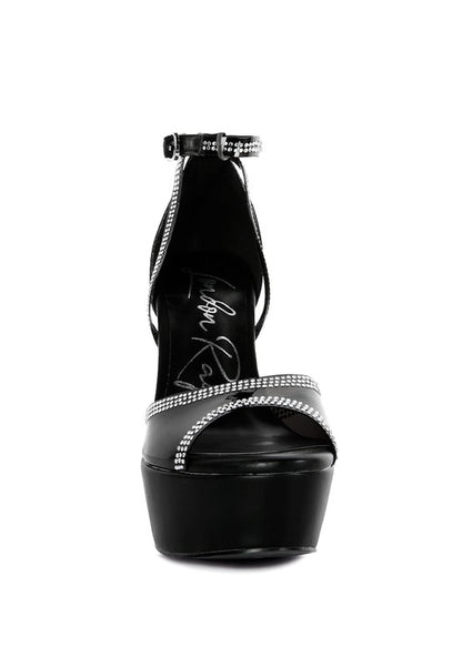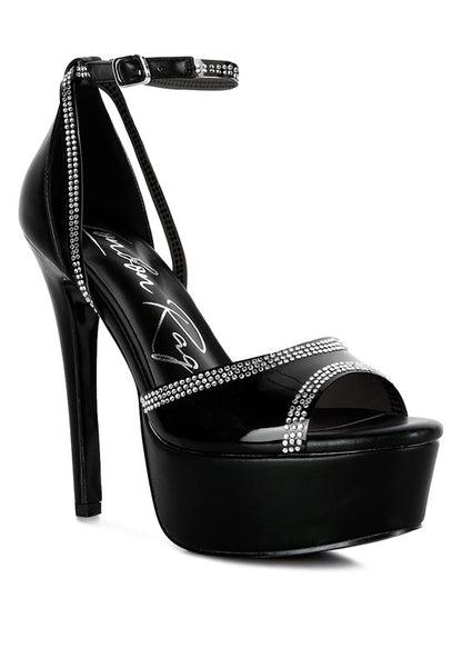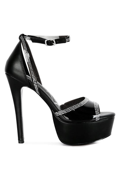 With elegant rhinestone detailing all over the vamp and ankle straps, these stiletto beauties are sure to turn heads when you take a stride. With platform heels and a soft cushion insole, you can enjoy these party stiletto platform sandals without compromising on comfort!