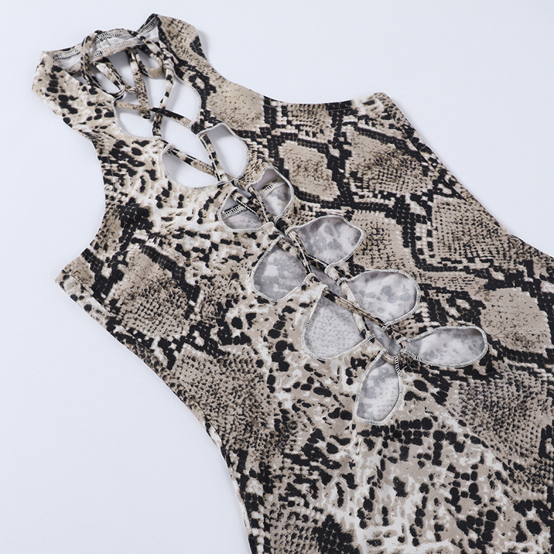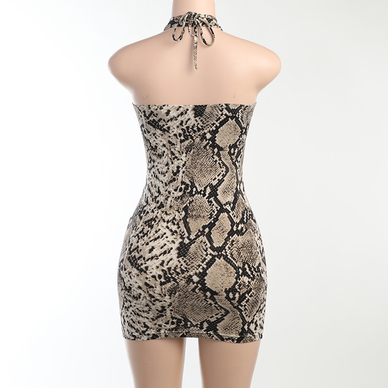 Cutout Chest Tie Snakeskin Slim Fit Dress