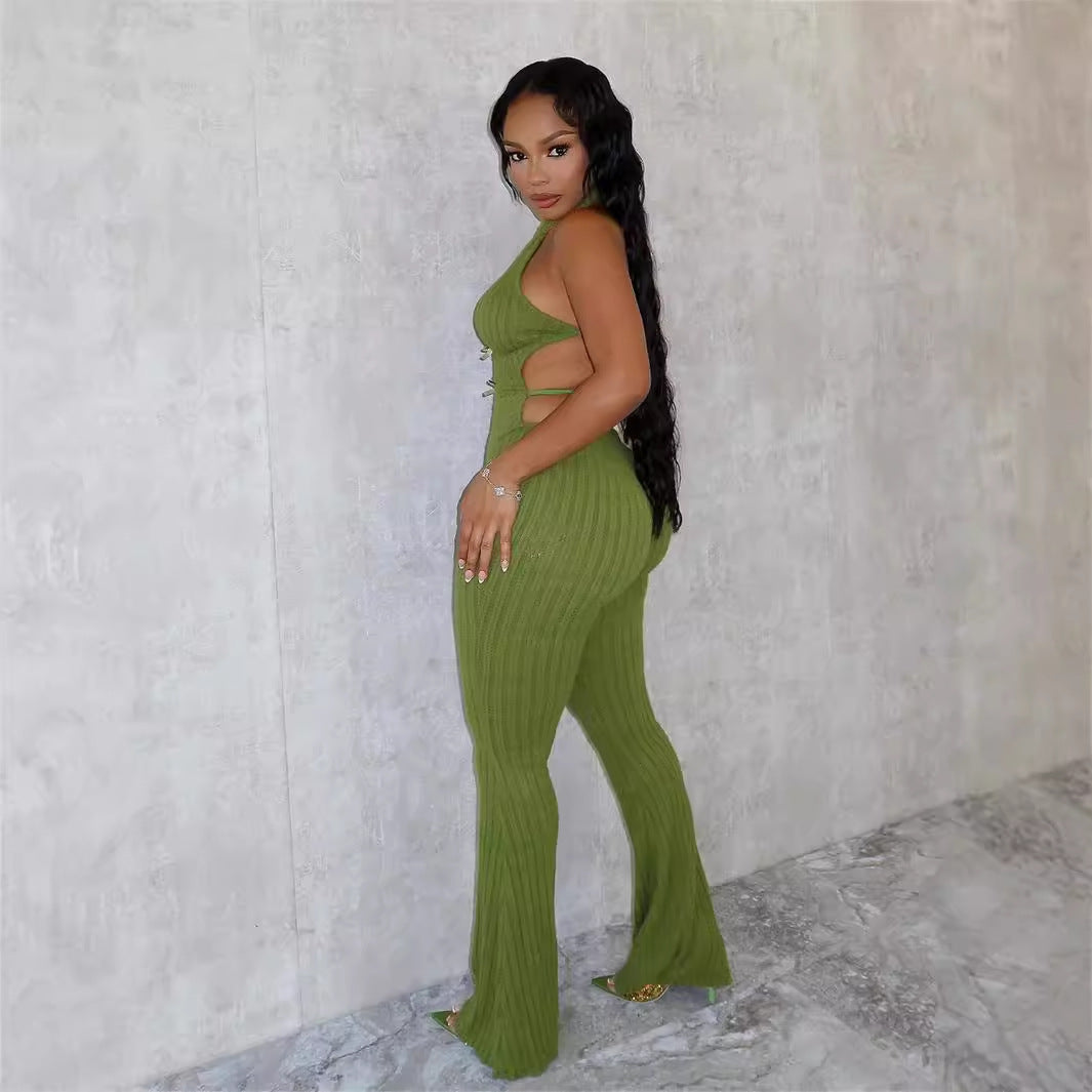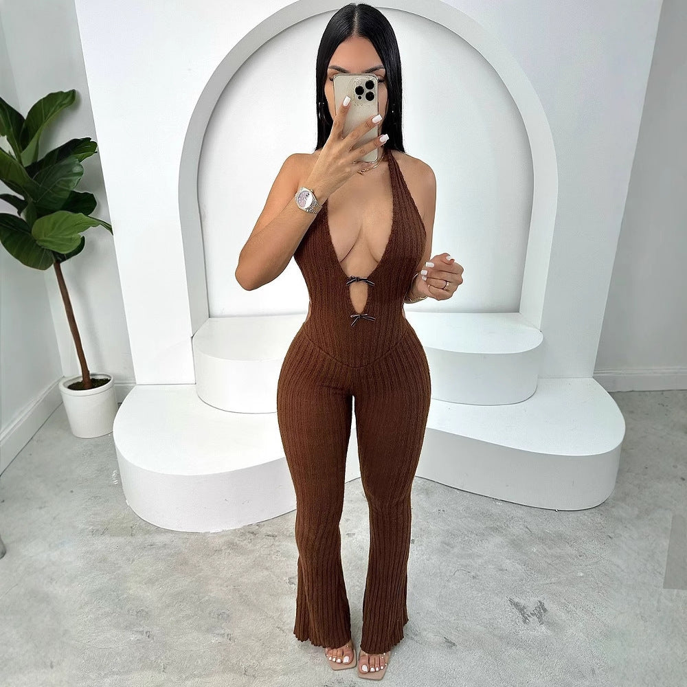 Halter Slim Fit Lace-up Backless Sexy Hot Girl Jumpsuit Women