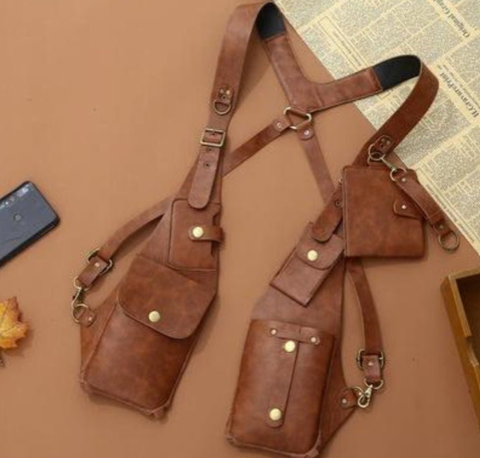 Vintage Leather Shoulder Holster Bag – A stylish, dual-pocket crossbody holster designed for hands-free convenience and urban utility, perfect for travel, streetwear, or cosplay.