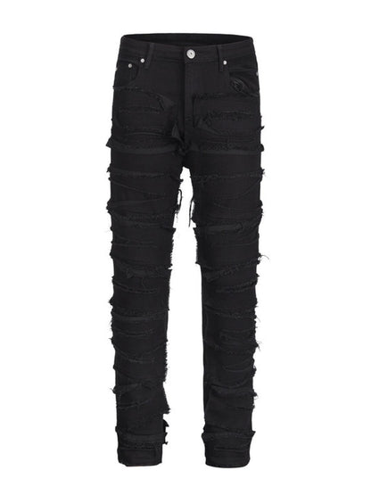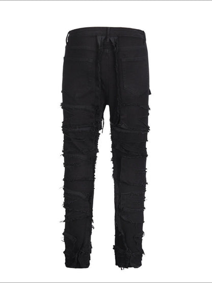 Men's Washed Distressed Panelled Jeans