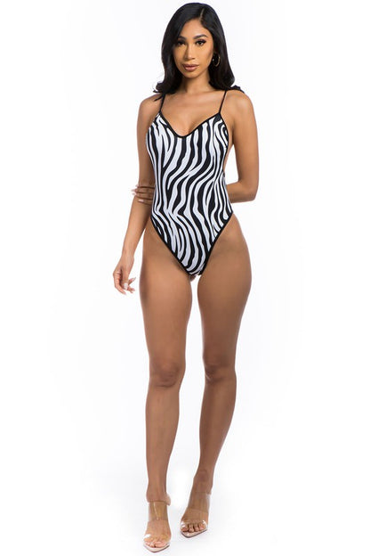 Wild Elegance: One-Piece Zebra Print Bathing Suit – Bold & Chic Swimwear