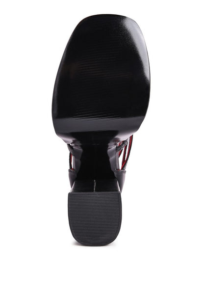 Cut out boot or the woven multi strap gladiator sandal? Call it whatever, this is a stylish square cut open toe high heeled shoe which is gorgeous and is crafted in great finish to bring the best of your outfit. The high platform block heeled style has zipper at back which facilitates easy wear and removal.