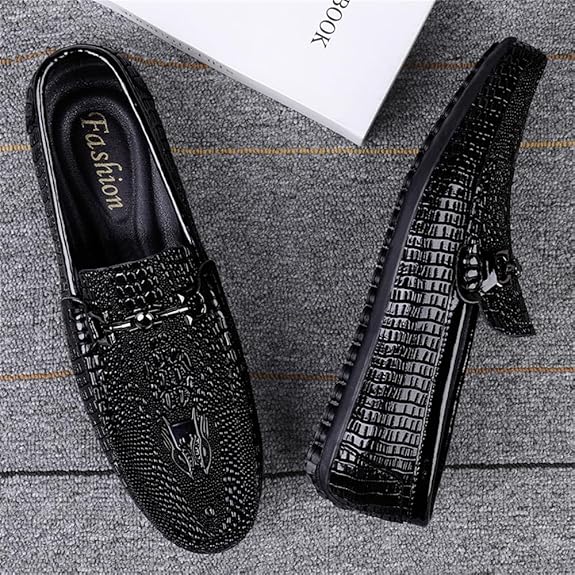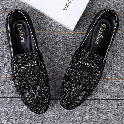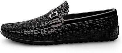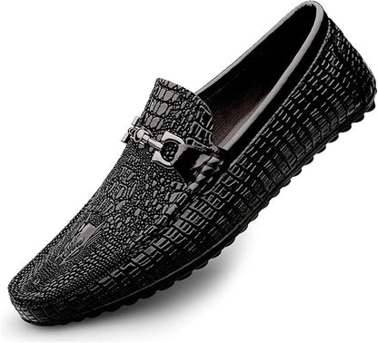 Snake Embossed Leather Loafers β Slip-On Glossy Cowhide Driving Shoes