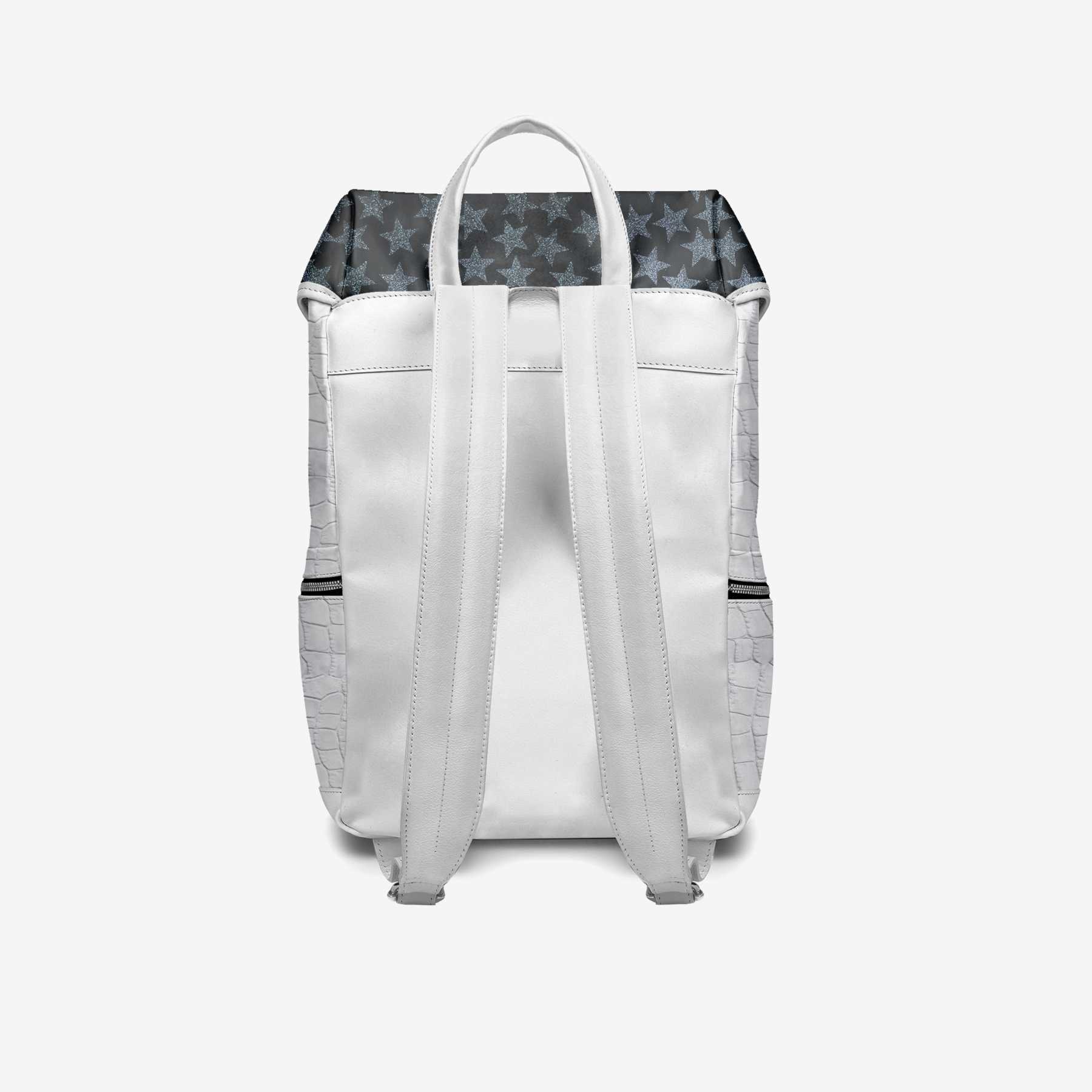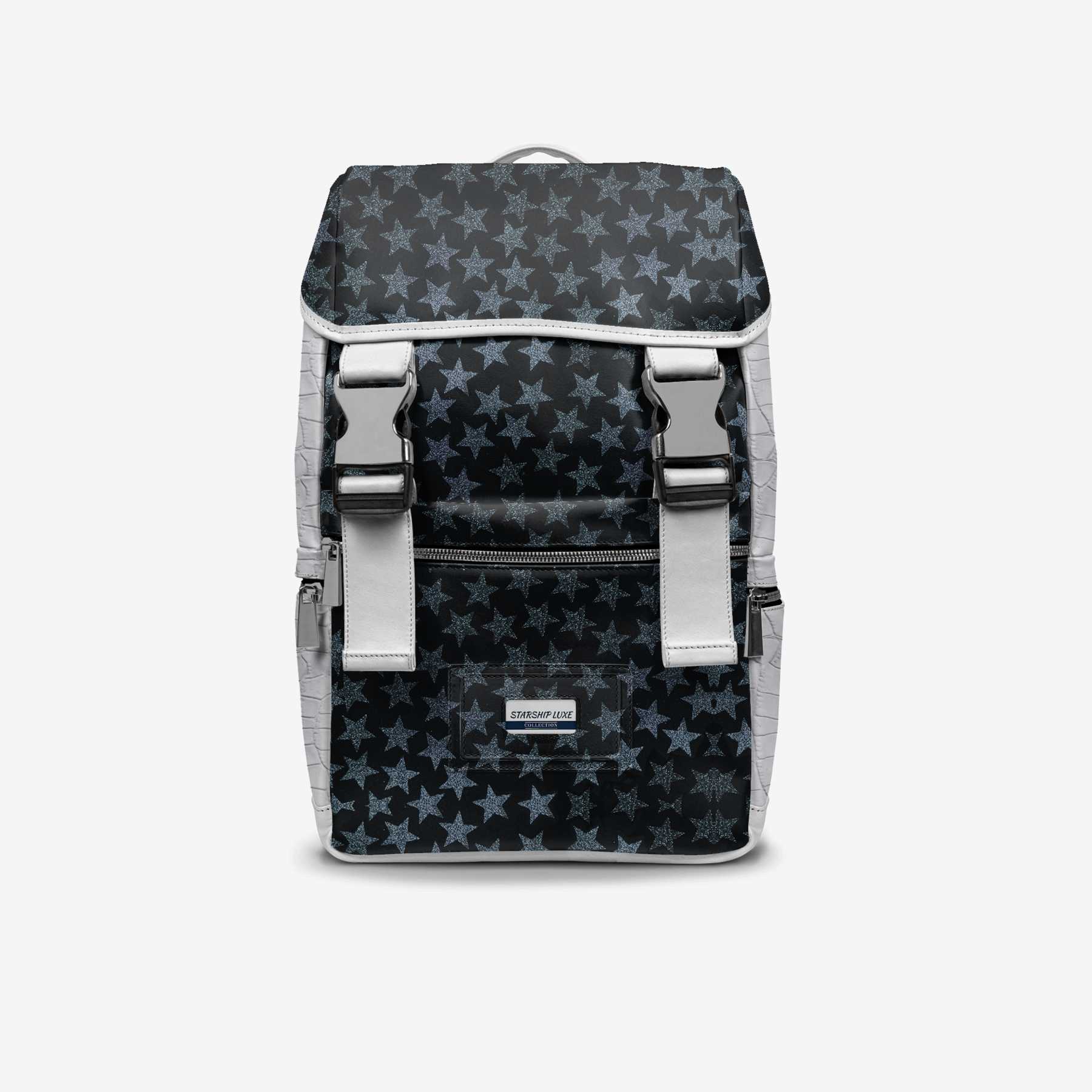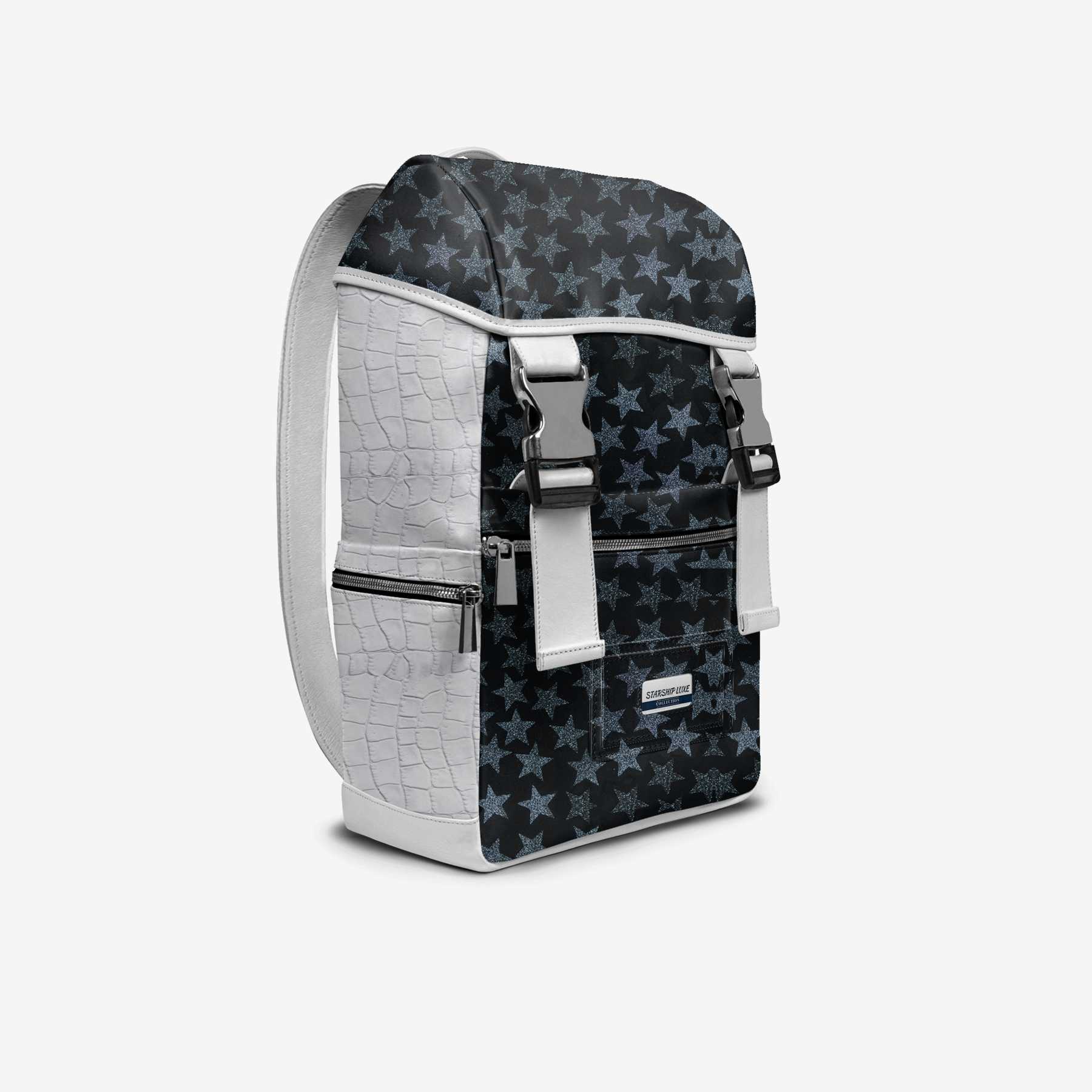 Featuring a contemporary star-studded print, twin front buckles, and multiple compartments, the STARBORN backpack is equal parts functional and fashionable. The exterior includes three zippered pockets for easy access, while the interior boasts two spacious compartments, a zip pocket, and eco-technical leather finishes for long-lasting quality.